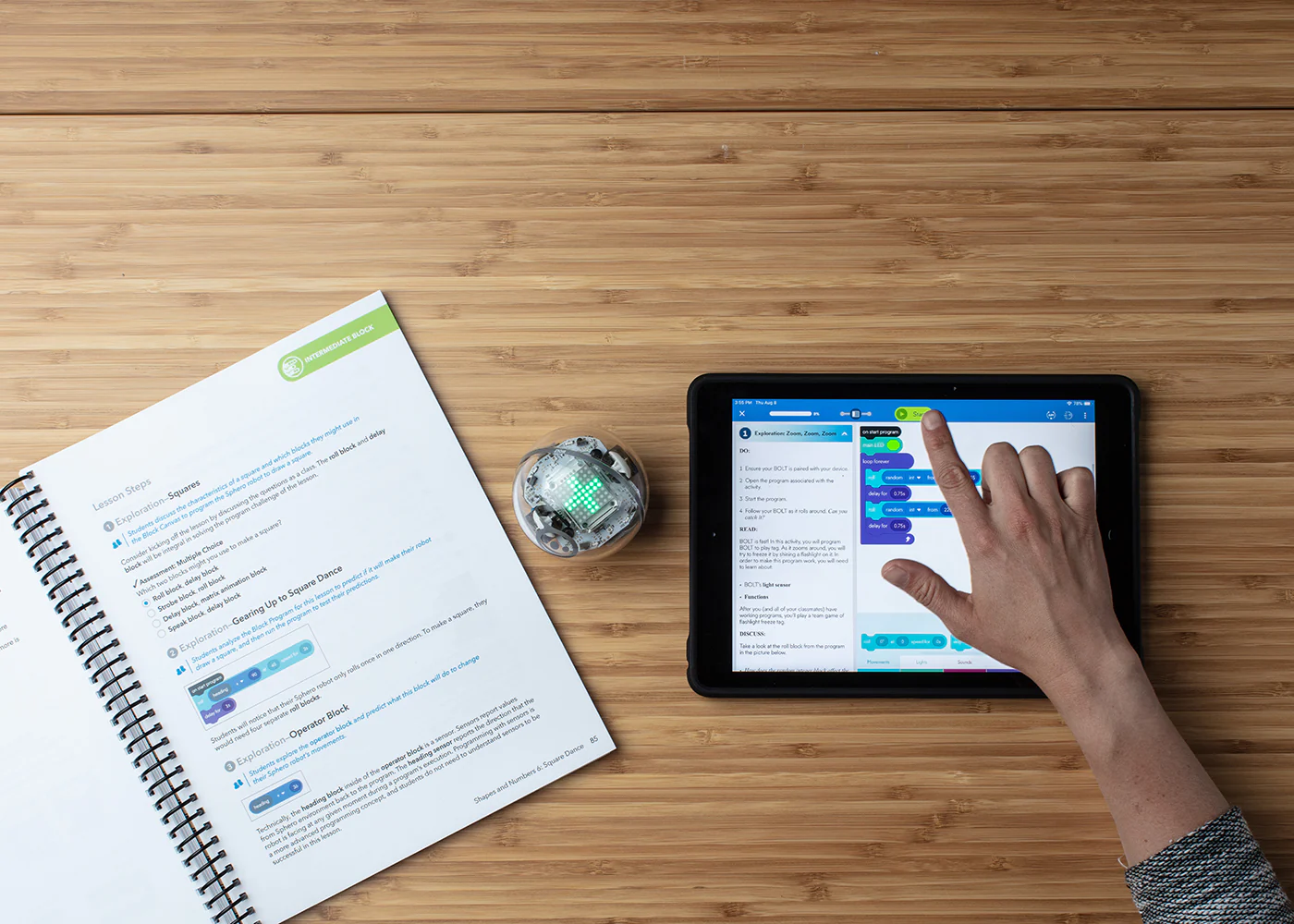 PRINTED TEACHER GUIDEBOOK: A resource-rich print guide containing 24 detailed lessons for educators. Digital materials are available at no cost on Sphero Central.