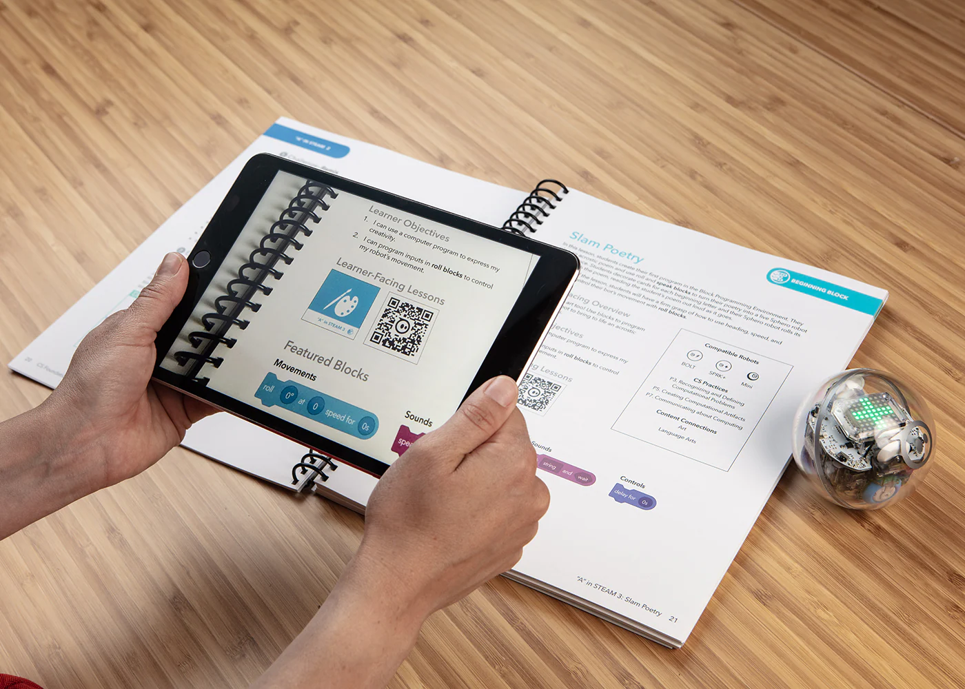 PRINTED TEACHER GUIDEBOOK: A resource-rich print guide containing 24 detailed lessons for educators. Digital materials are available at no cost on Sphero Central.